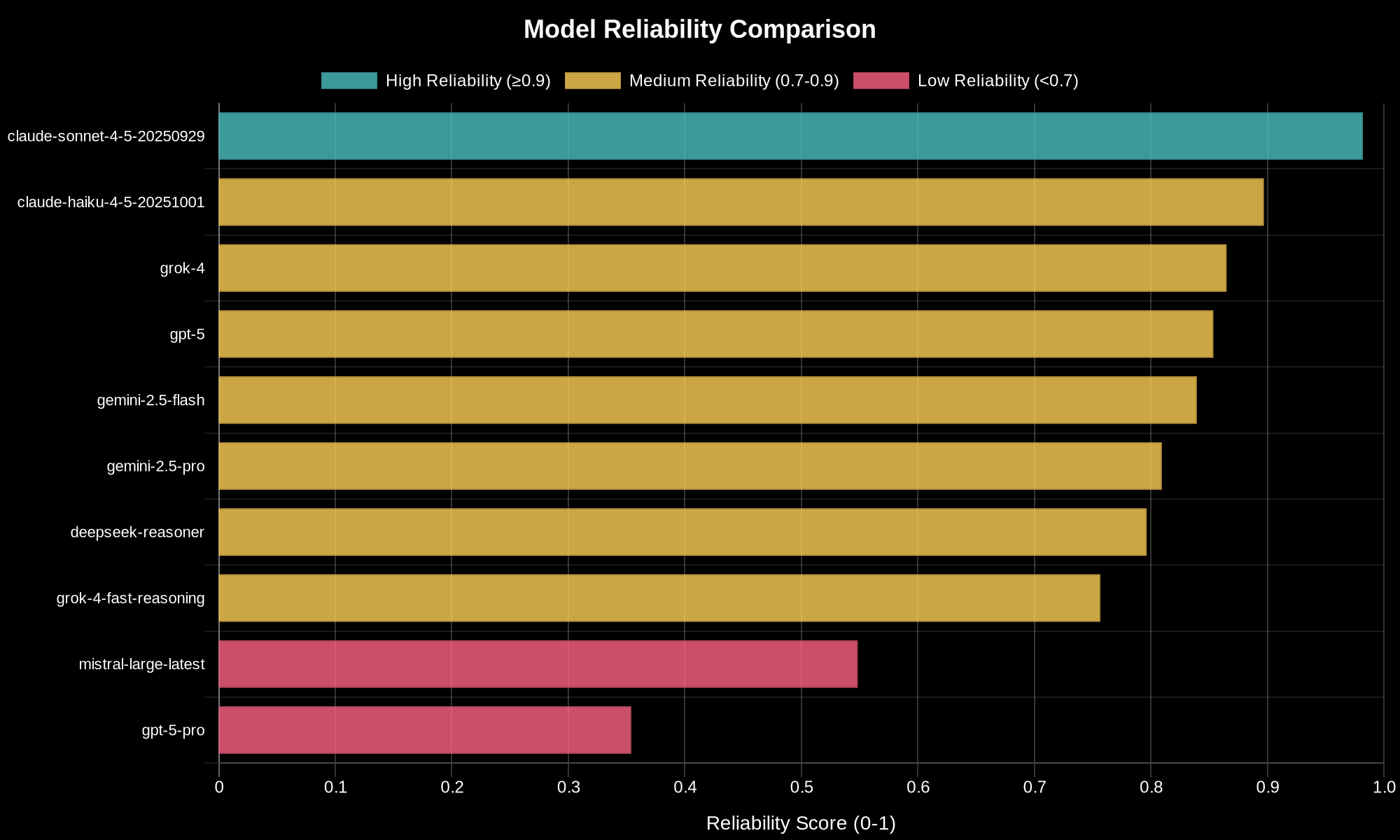 Let’s start at the bottom. The bottom tier includes models scoring below 70% overall or below 80% reliability. Four models landed here.