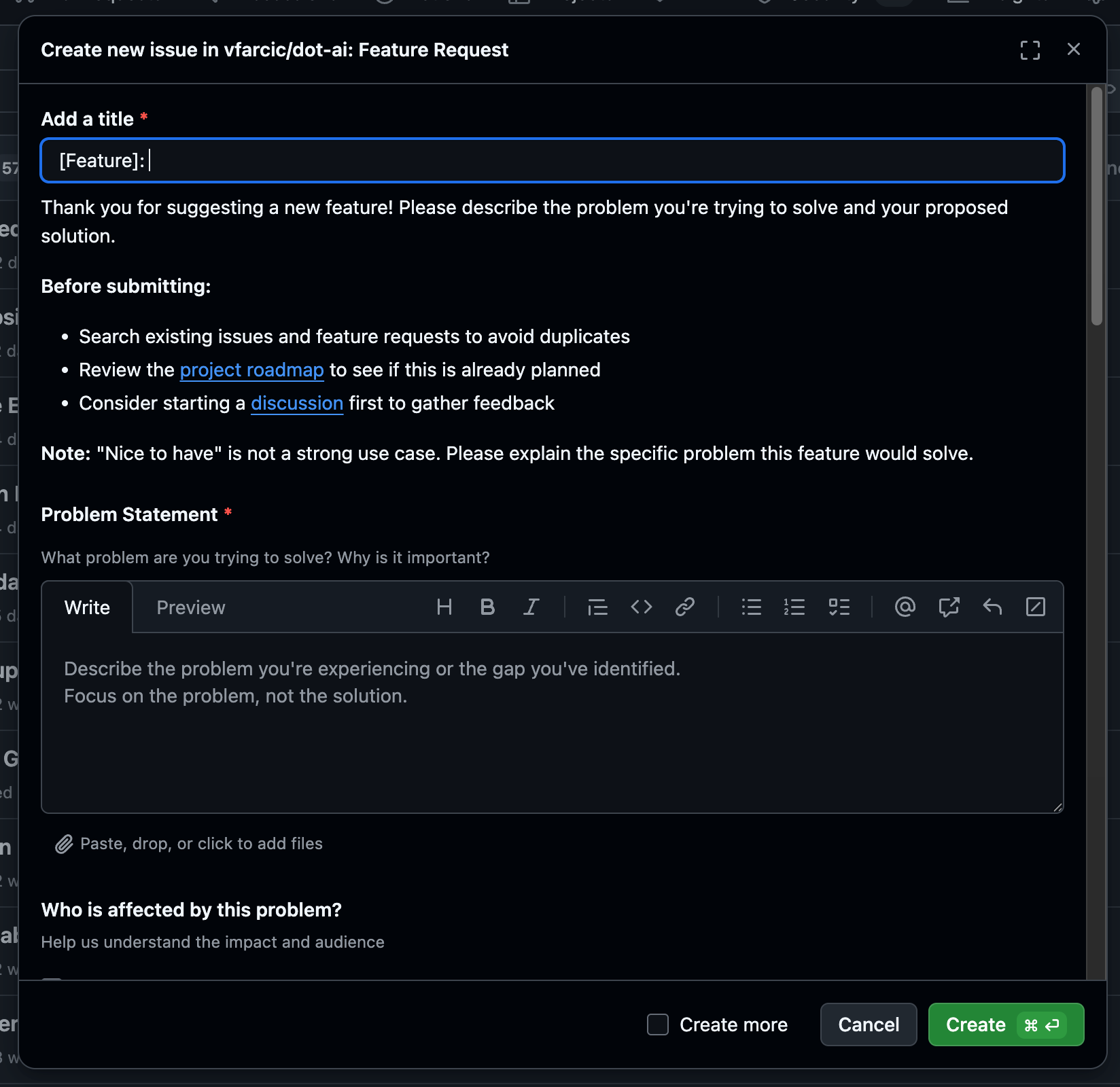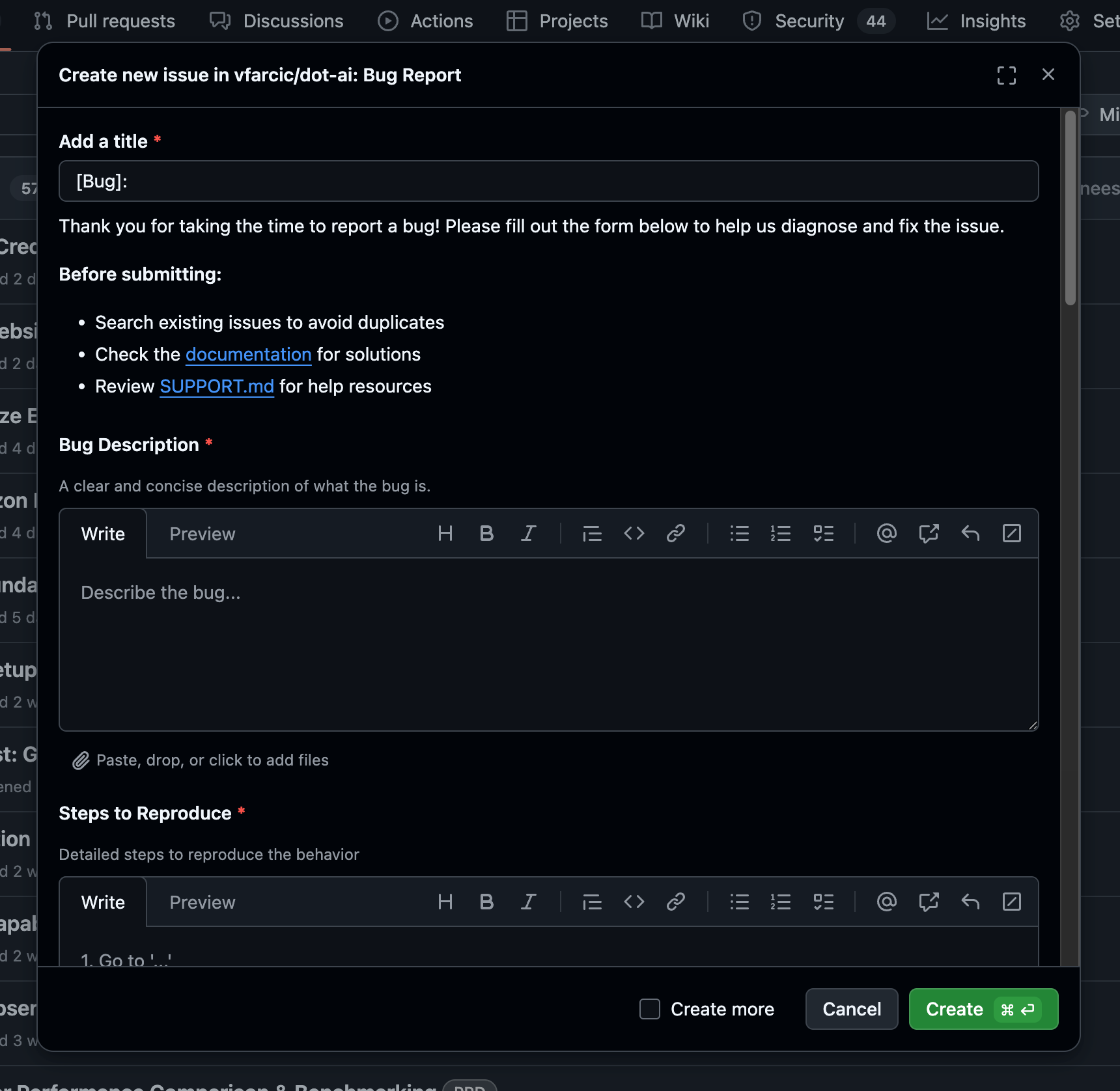 export DOT_AI_IMAGE=ghcr.io/vfarcic/dot-ai:0.120.0GitHub Issue Templates