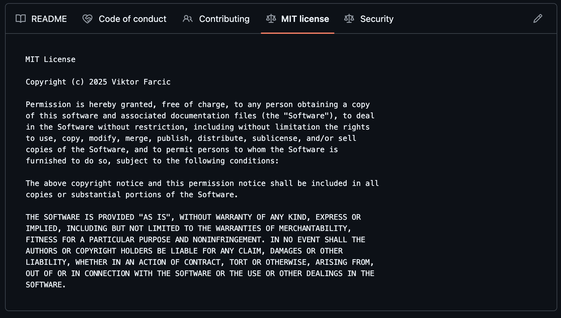 This project uses the MIT license, which is permissive and allows people to use, modify, and distribute the code. For internal projects, you might have different licensing requirements, but having it clearly stated removes ambiguity and protects everyone involved.