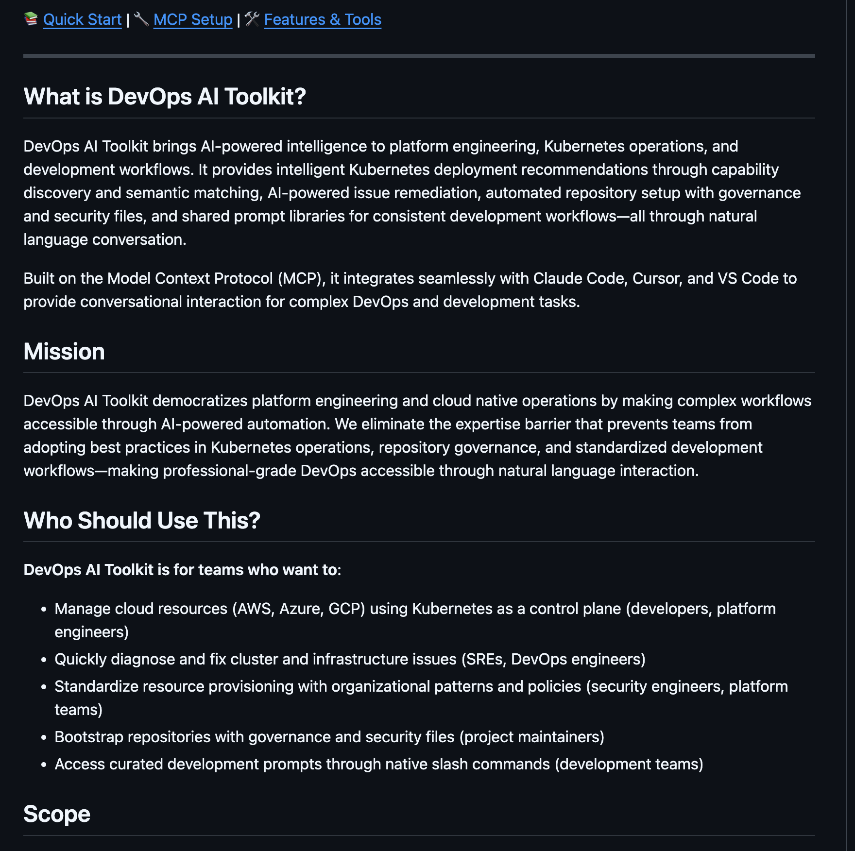 Try the Project Setup MCP tool, or any other tool in the DevOps AI Toolkit project. Let me know what you think, star it, fork it, open issues, contribute. All those templates and governance files I just showed you? They’re already set up in that project, ready for you to engage with.