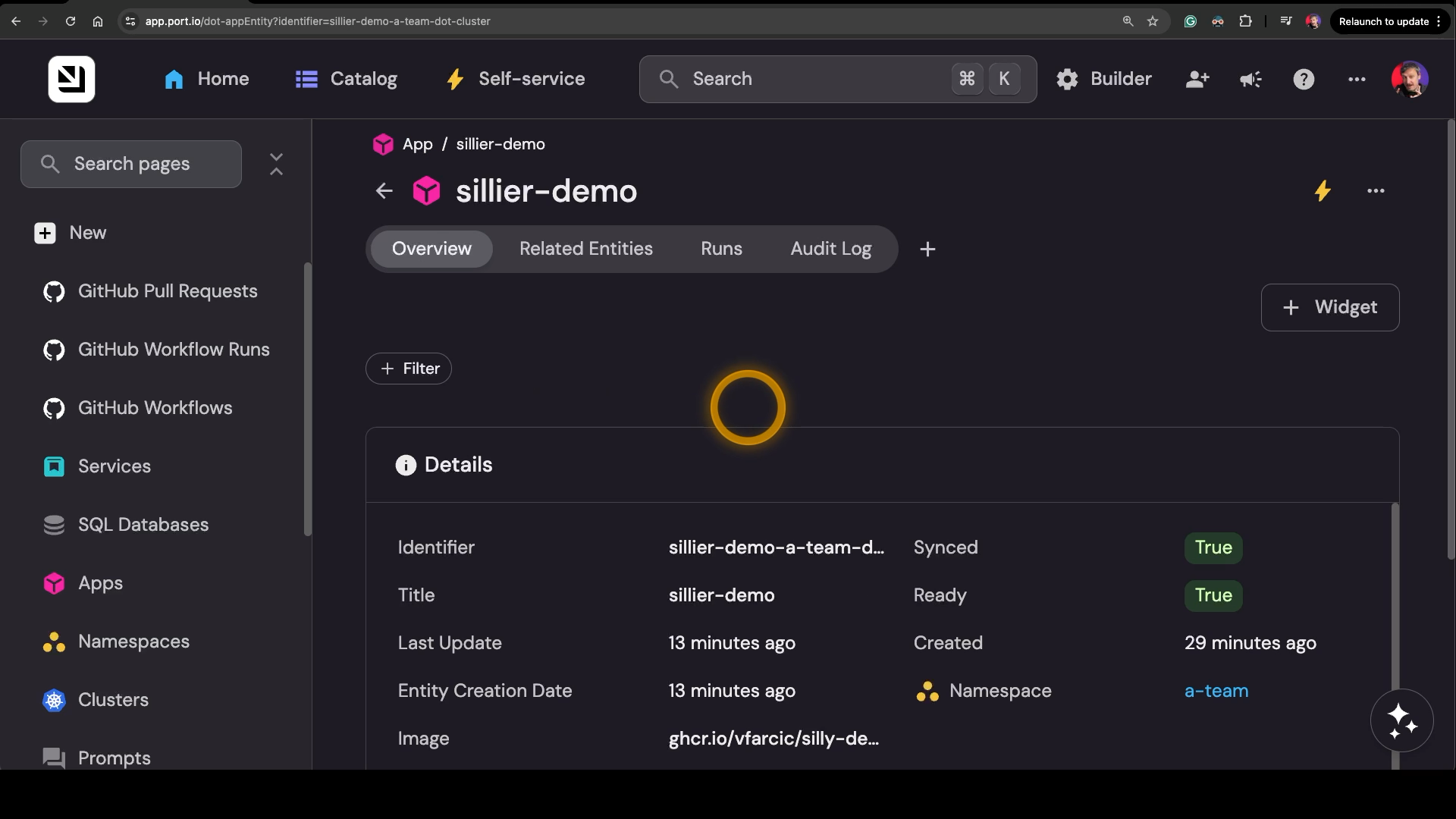 ⏺ Here's the status of the silly-demo app in Port: