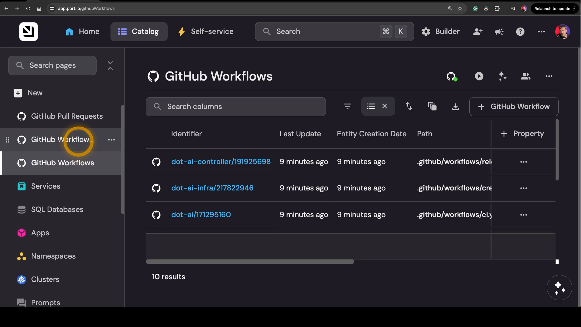 ⏺ port-vscode-eu - List Entities (MCP)(blueprintIdentifier: "githubWorkflow"...)